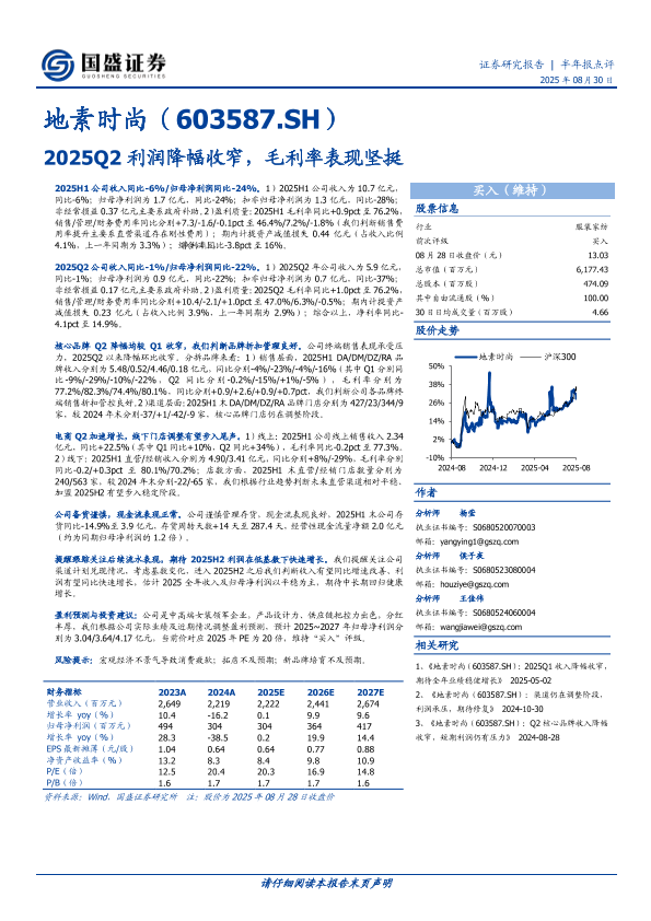 【国盛证券】【20250830】地素时尚(603587.SH)-2025Q2利润降幅收窄,毛利率表现坚挺-3页