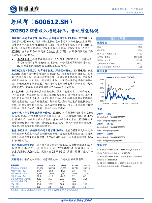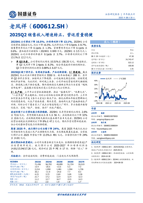【国盛证券】【20250830】老凤祥-600612.SH-2025Q2销售收入增速转正_营运质量稳健-3页