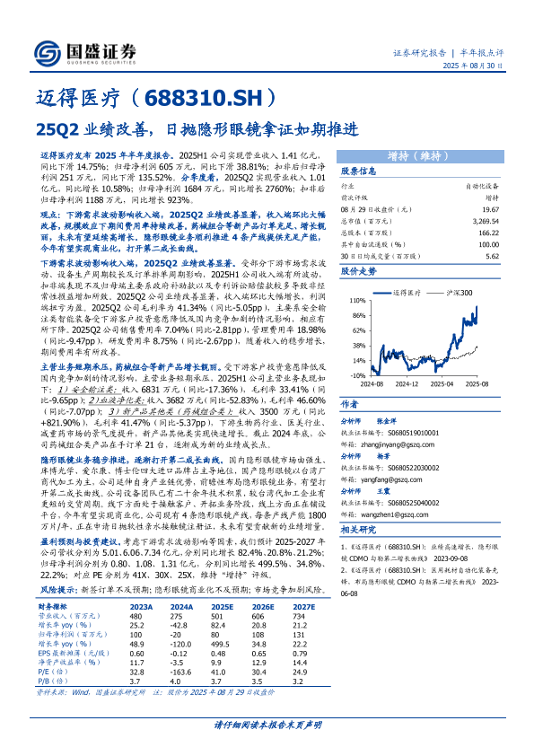 【分析师 陈金星】【20250830】迈得医疗-25Q2业绩改善-日抛隐形眼镜拿证如期推进-3页