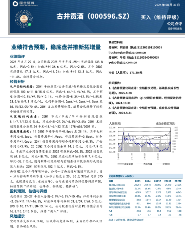 【国金证券】【20250830】古井贡酒-业绩符合预期_稳底盘并推新拓增量-4页
