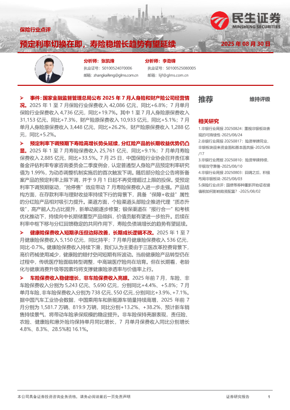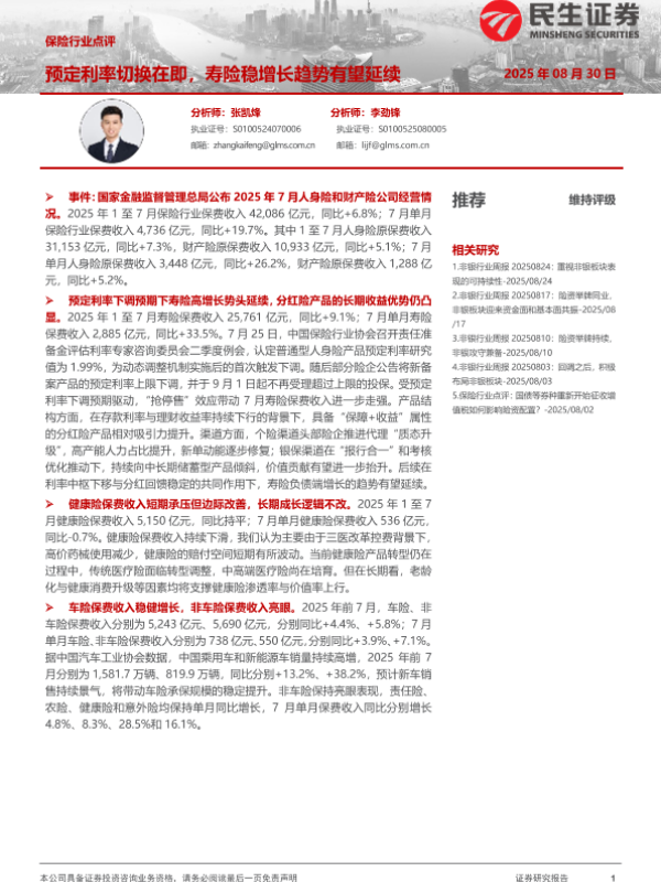 【民生证券】【20250830】保险行业点评-预定利率切换在即_寿险稳增长趋势有望延续-6页