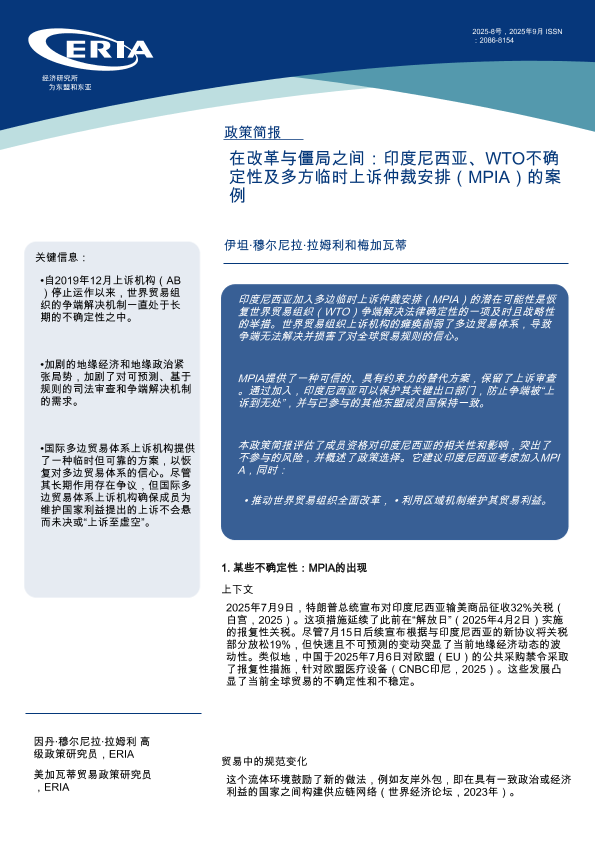 【ERIA】【202509】在改革与瘫痪之间:印度尼西亚、世贸组织的不确定性和多党临时上诉仲裁安排案-8页
