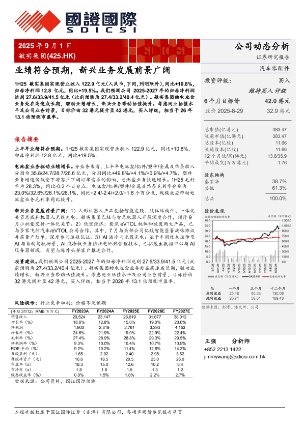 【敏实集团B(425.HK)】【20250901】敏实集团(425.HK)-业绩符合预期,新兴业务发展前景广阔-3页
