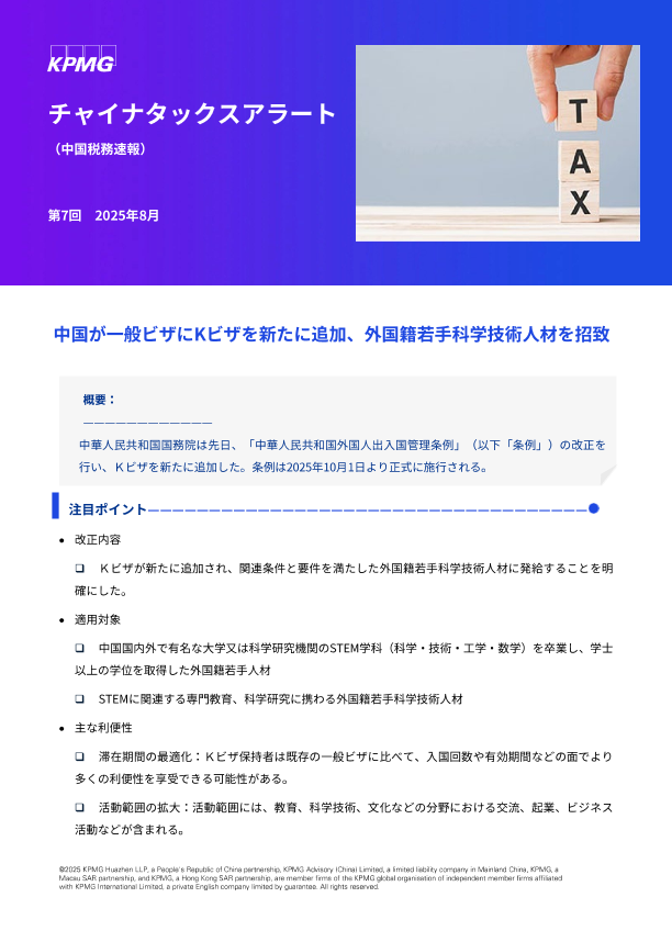 【KPMG】【20251001】中国が一般ビザにKビザを新たに追加、外国籍若手科学技術人材を招致-4页