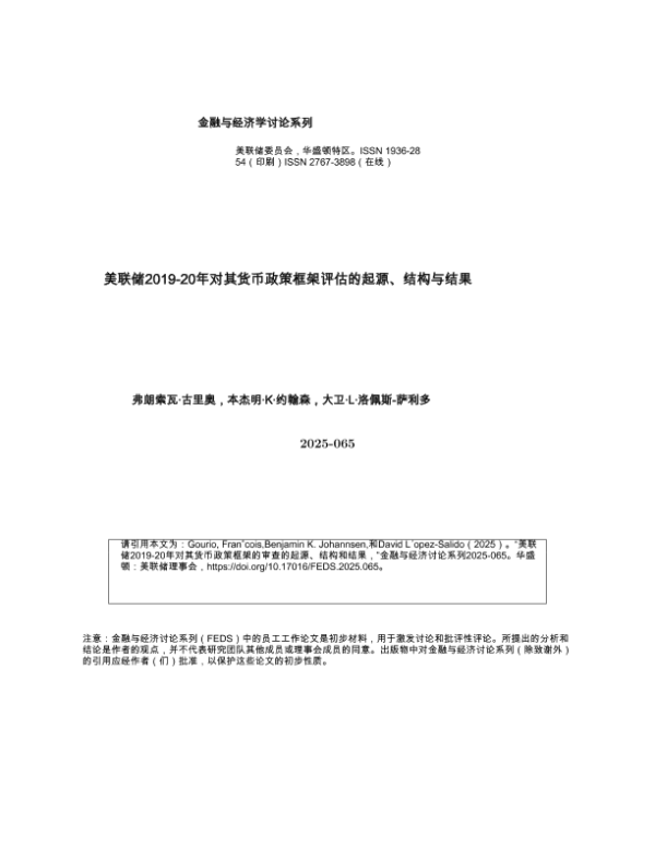 【弗朗索瓦&古里奥&本杰明K约翰森&大卫L洛佩斯-萨利多】【2025】美联储2019-20年对其货币政策框架评估的起源、结构与结果-36页