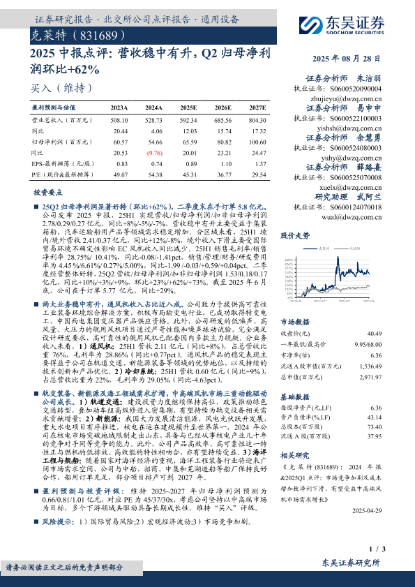 【东吴证券】【20250828】克莱特-2025中报点评:营收稳中有升,Q2归母净利润环比+62%-3页
