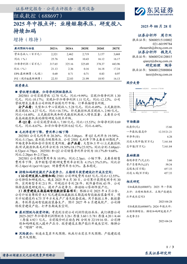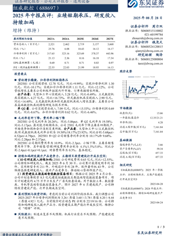 【东吴证券】【20250828】纽威数控-2025年中报点评:业绩短期承压,研发投入持续加码-3页