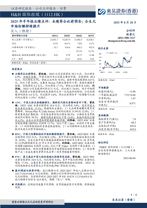 【东吴证券(香港)】【20250828】H&H国际控股-2025年半年报业绩点评-业绩符合此前预告;合生元市场份额持续提升-4页