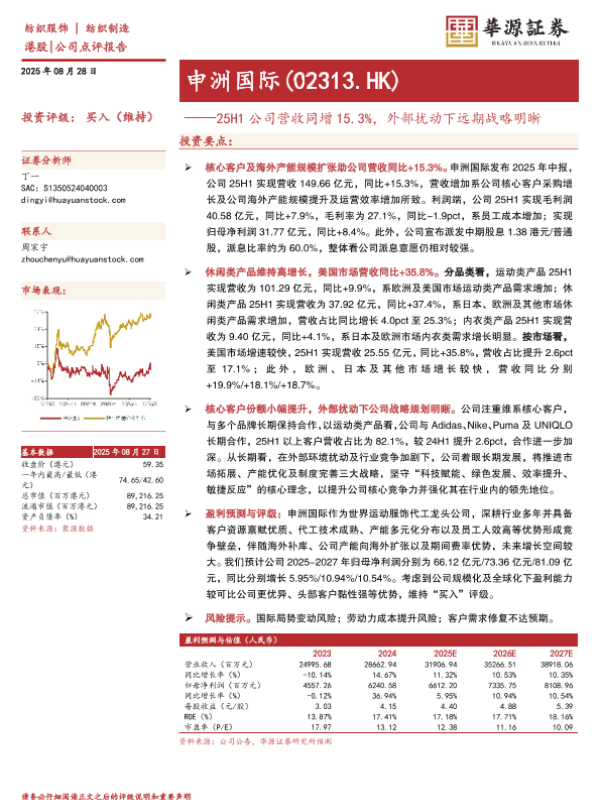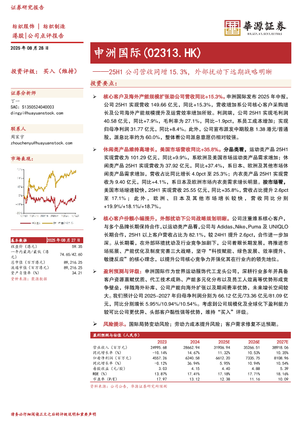【华源证券】【20250828】申洲国际-25H1公司营收同增15.3%,外部扰动下远期战略明晰-3页