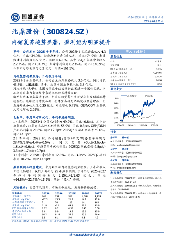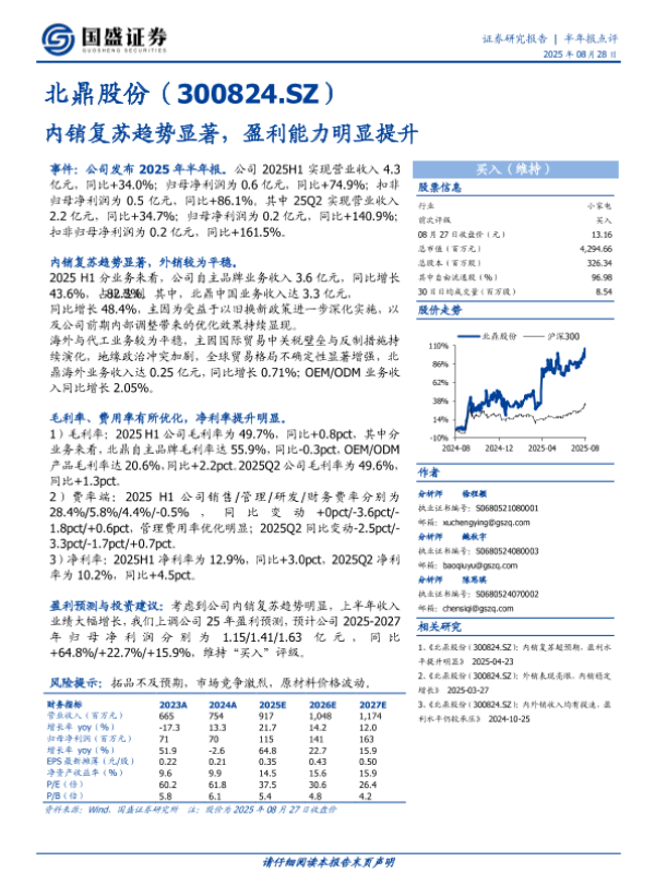 【国盛证券】【20250828】北鼎股份-内销复苏趋势显著-盈利能力明显提升-3页