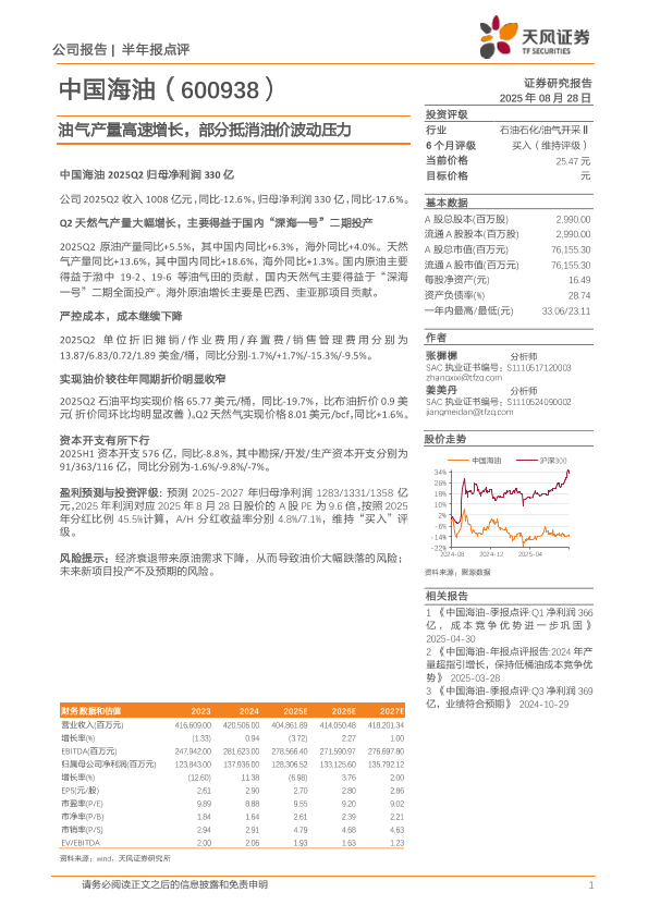 【天风证券】【20250828】中国海油-油气产量高速增长_部分抵消油价波动压力-3页