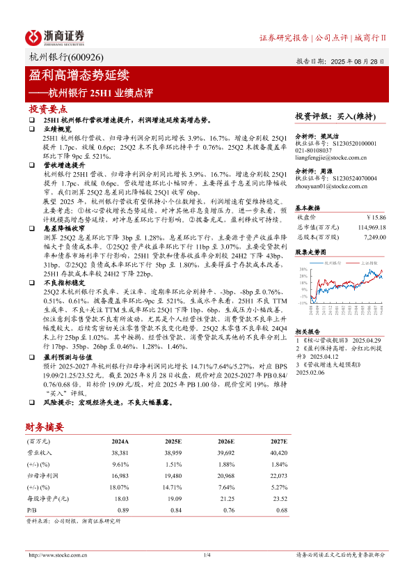 【浙商证券】【20250828】杭州银行-盈利高增态势延续-4页