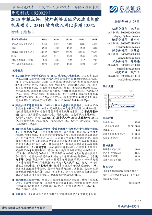 【东吴证券】【20250829】开发科技-2025中报点评:境外新签西班牙&波兰智能电表项目,25H1境内收入同比高增133%-3页