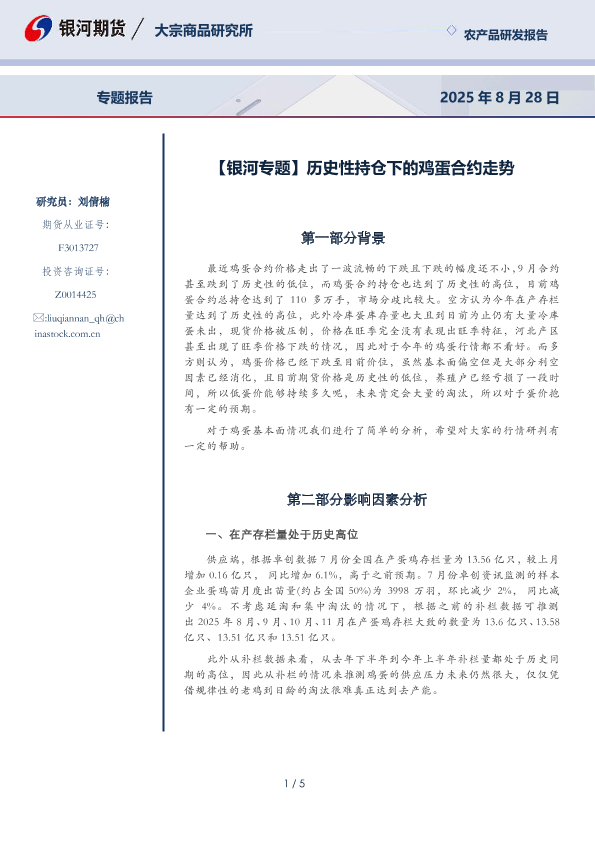 【银河期货/大宗商品研究所】【20250828】鸡蛋-历史性持仓下的鸡蛋合约走势-5页