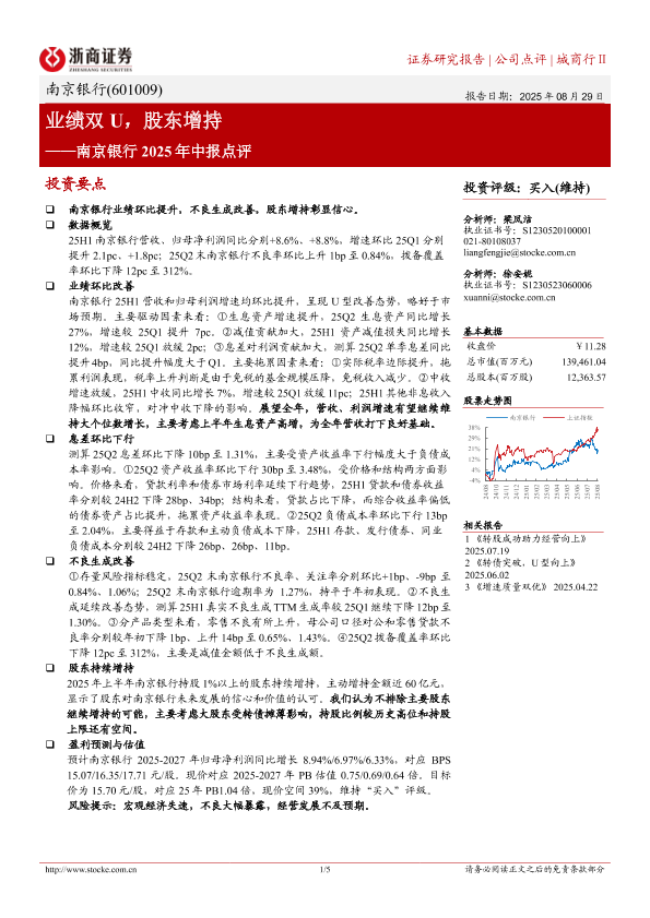【浙商证券】【20250829】南京银行-业绩双 U,股东增持-5页
