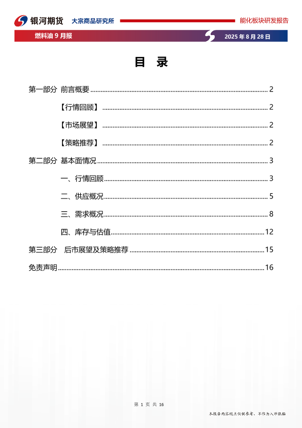 【银河期货】【20250828】燃料油9月报-高硫供应压力较预期下行_低硫关注配额节奏-16页