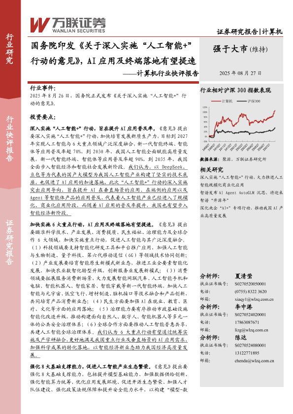 【万联证券】【20250827】国务院印发《关于深入实施“人工智能+”行动的意见》-AI应用及终端落地有望提速-3页