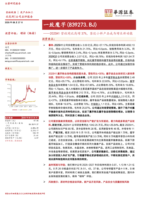 【华源证券】【20250827】一致魔芋-2025H1营收同比高增37-茶饮小料产品成为增长新动能-4页
