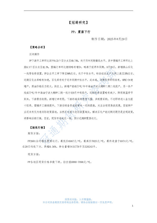 【冠通期货】【20250829】PP:震荡下行-3页