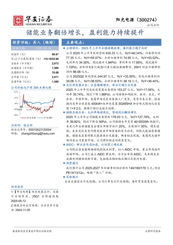 【华安证券】【20250829】阳光电源-储能业务翻倍增长,盈利能力持续提升-4页