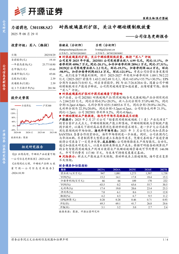 【开源证券】【20250829】力诺药包-耐热玻璃盈利扩张,关注中硼硅模制瓶放量-4页