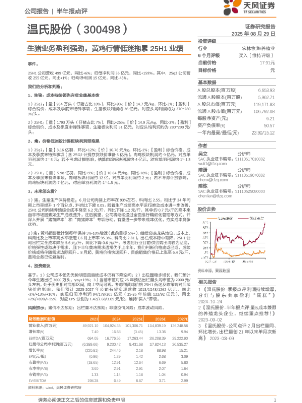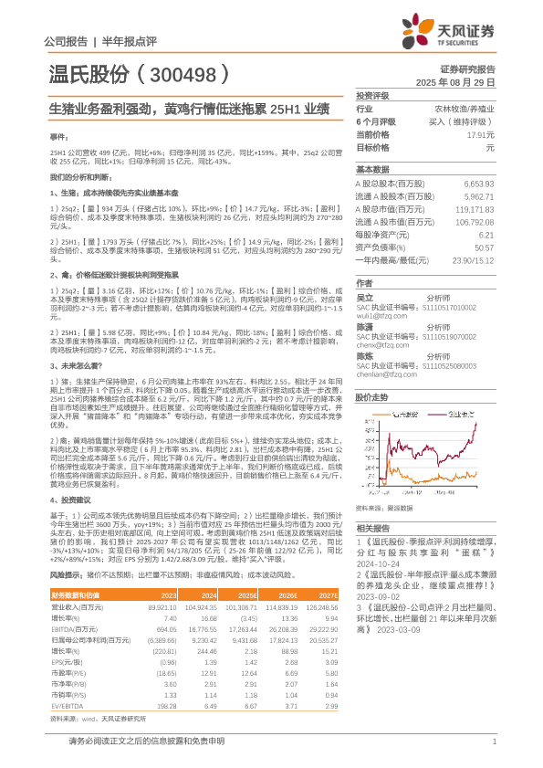【天风证券】【20250829】温氏股份-生猪业务盈利强劲-黄鸡行情低迷拖累25H1业绩-3页