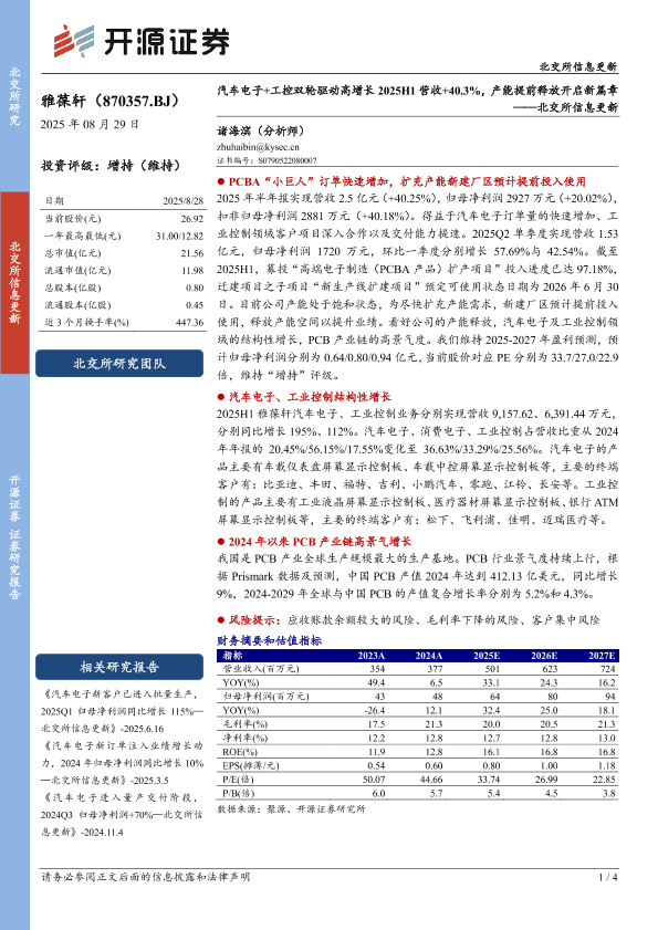 【开源证券】【20250829】雅葆轩-汽车电子+工控双轮驱动高增长2025H1营收+40.3%,产能提前释放开启新篇章-4页