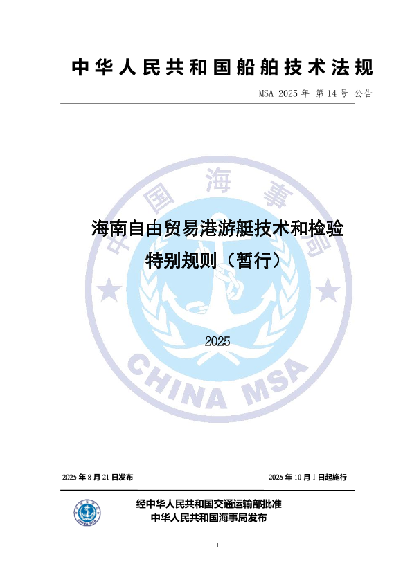 【中国海事局】【20251001】海南自由贸易港游艇技术和检验特别规则(暂行)-86页