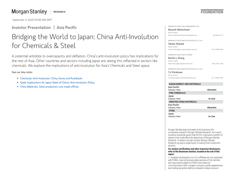 【Morgan Stanley】【20250903】中国化工与钢铁行业的“反内卷”-21页