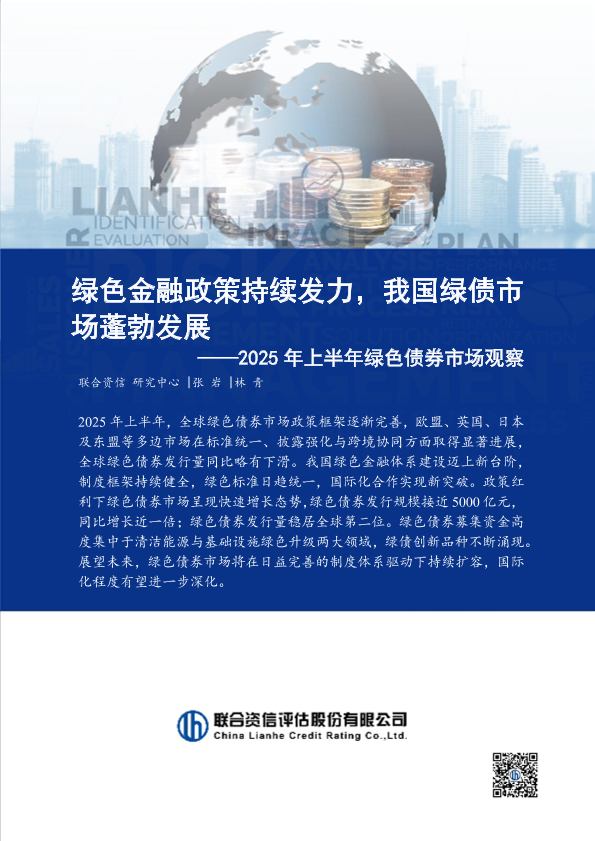 【联合资信研究中心|张岩|林青】【2025】2025年上半年绿色债券市场观察-绿色金融政策持续发力,我国绿债市场蓬勃发展-8页