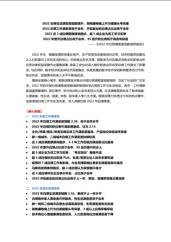 【智联招聘】【20220101】2022年白领满意度指数调研报告-31页