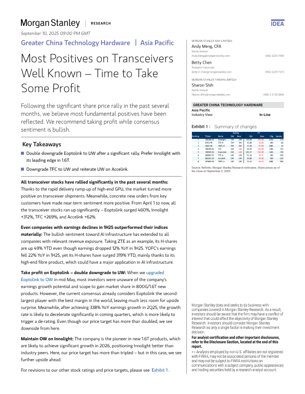 【Morgan Stanley】【20250910】Eoptolink-Innolight-收发器(光模块)的多数优势已广为人知——是时候获利了-46页