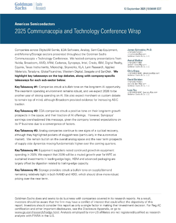 【Goldman Sachs Equity Research】【20250912】美洲半导体:2025年通讯与技术大会总结-10页