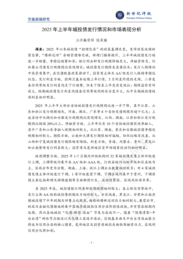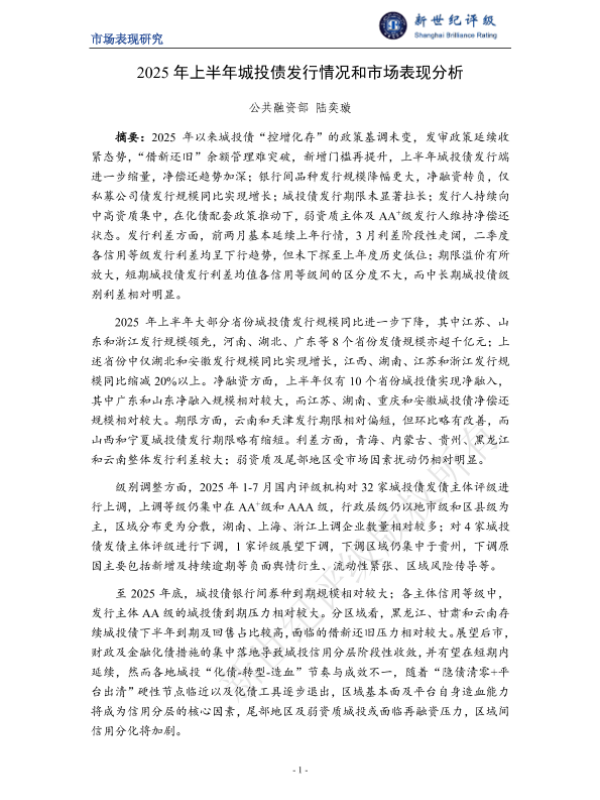 【公共融资部 陆奕璇】【2025】2025年上半年城投债发行情况和市场表现分析-14页