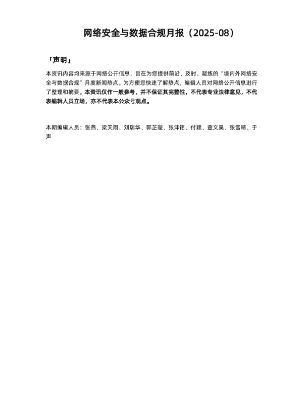 【竞天公诚】【202508】网络安全与数据合规月报(2025-08)-19页