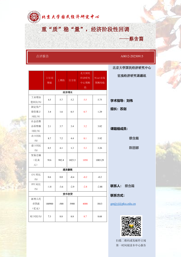 【北京大学国民经济研究中心】【20250915】重“质”稳“量”,经济阶段性回调-26页