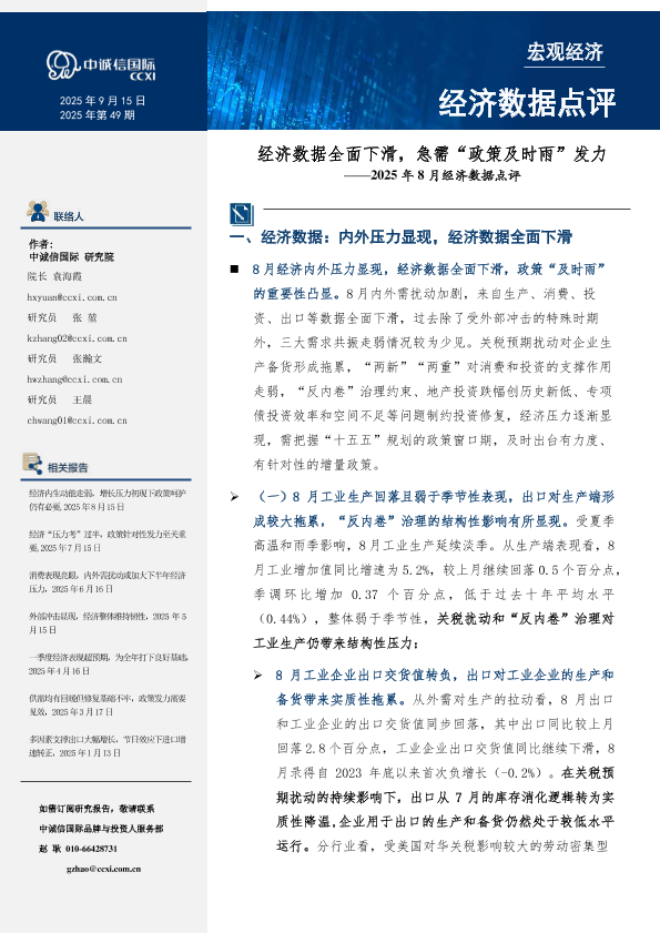 【中诚信国际】【20250815】经济数据全面下滑,急需“政策及时雨”发力-12页