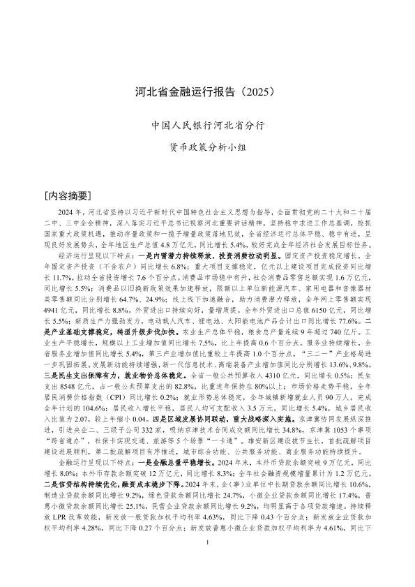 中国人民银行河北省分行 金融 2025年 PDF 2.91 MB