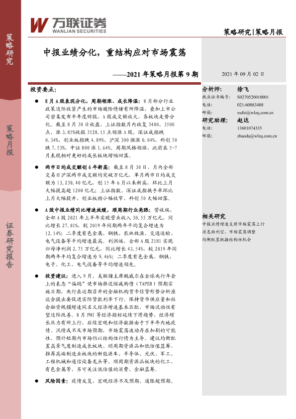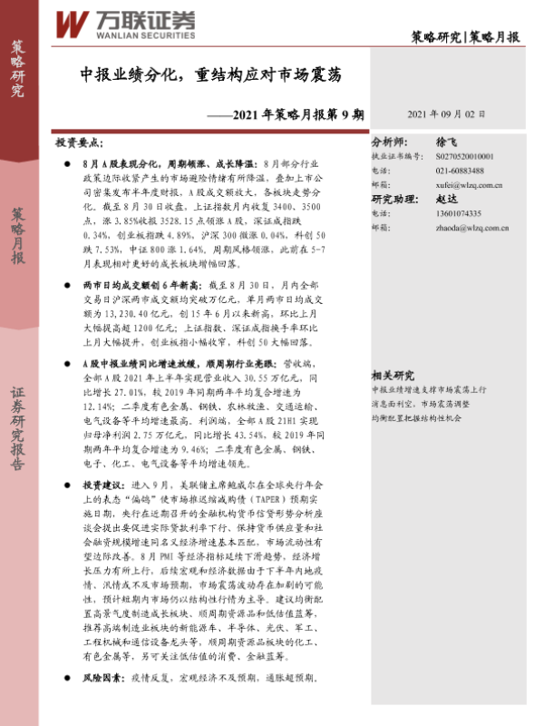 【万联证券】【20210902】2021年策略月报第9期:中报业绩分化,重结构应对市场震荡-15页