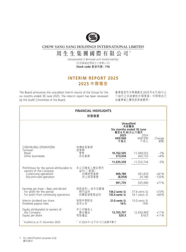 【周生生集团国际有限公司】【20250630】Chow Sang Sang Holdings International Limited - Interim Report 2025-56页