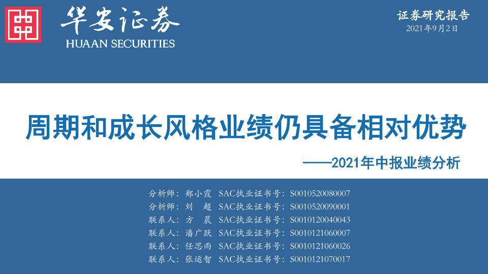 【华安证券】【20210902】2021年中报业绩分析:周期和成长风格业绩仍具备相对优势-30页