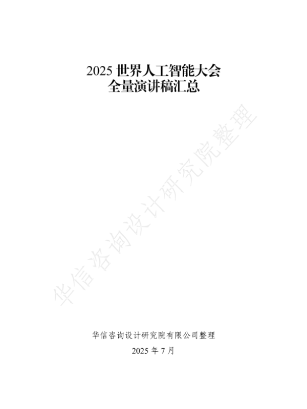 【华信咨询设计研究院有限公司】【202507】2025世界人工智能大会 全量演讲稿汇总-109页
