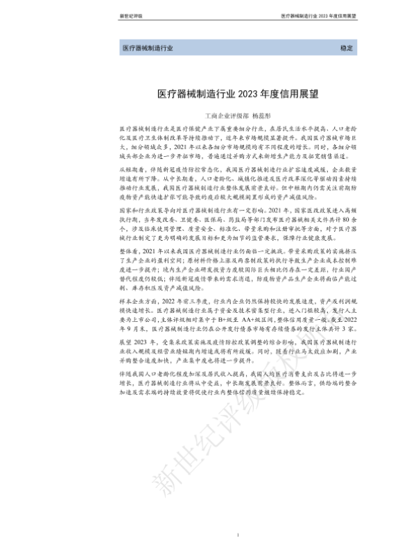 【新世纪评级】【20230101】医疗器械制造行业2023年度信用展望-21页