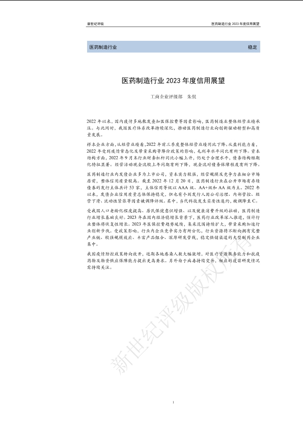 【新世纪评级】【20230101】医药制造行业2023年度信用展望-30页