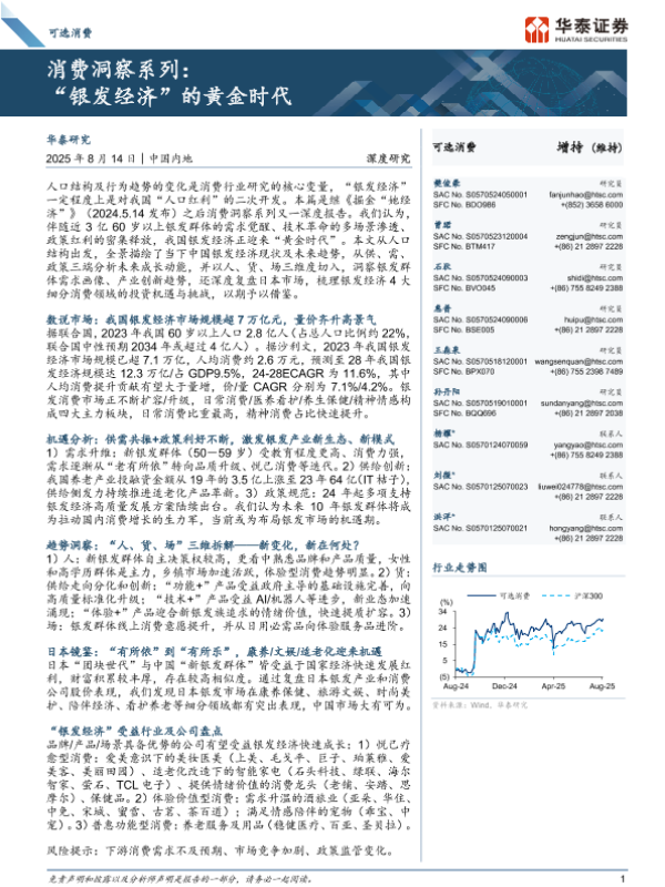 【华泰证券】【202508】可选消费行业消费洞察系列:“银发经济”的黄金时代-95页