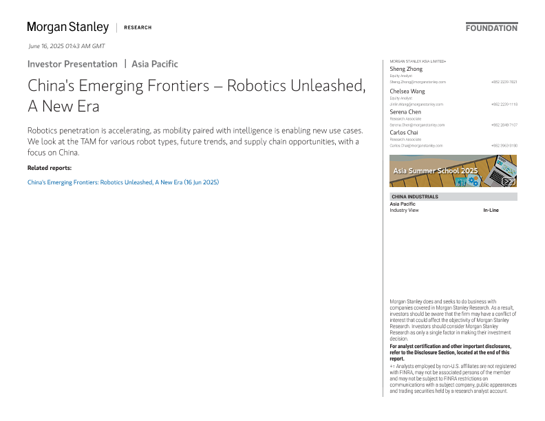 【Morgan Stanley】【20250616】China's Emerging Frontiers – Robotics Unleashed, A New Era-48页