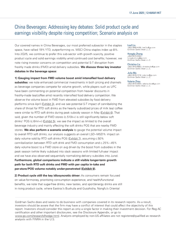 【Goldman Sachs】【20250617】中国饮料行业:解决关键争议:尽管竞争加剧,但产品周期稳固且盈利可见性强-情景分析-26页