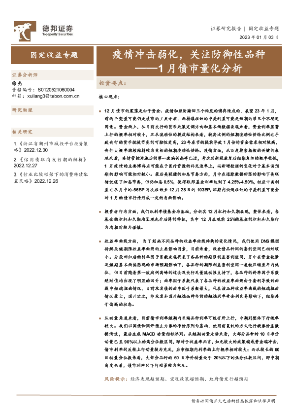 【德邦证券】【20230103】1月债市量化分析:疫情冲击弱化,关注防御性品种-15页