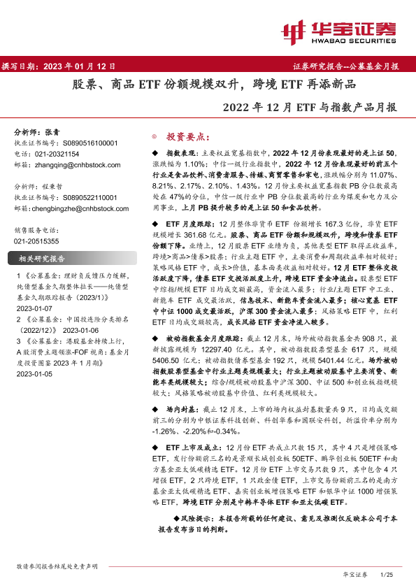 【华宝证券】【20230112】2022年12月ETF与指数产品月报:股票、商品ETF份额规模双升,跨境ETF再添新品-25页