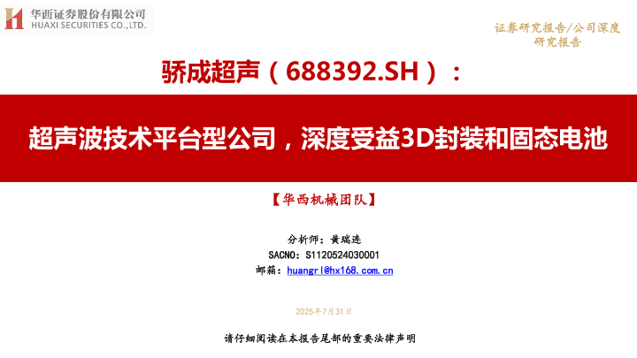 【华西证券】【20250731】骄成超声-超声波技术平台型公司,深度受益3D封装和固态电池-59页